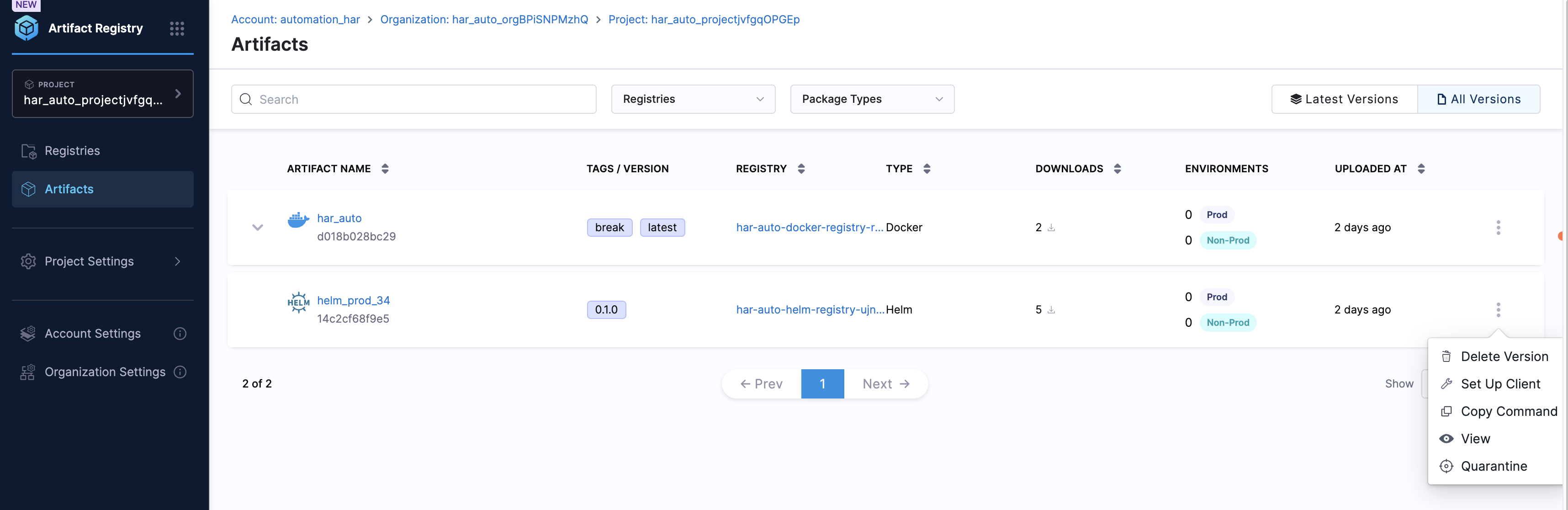 - Click the 3-dot menu next to the artifact name.