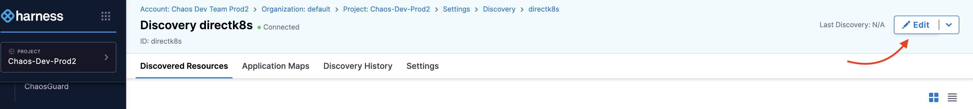 Select the discovery agent you have created, and click Edit.