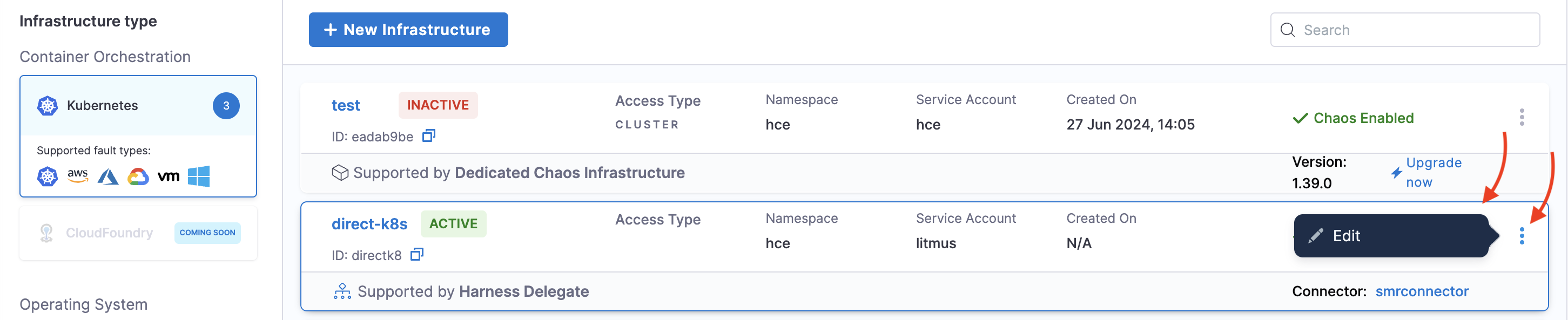 Go to Environments and select the environment that houses your Harness Delegate.