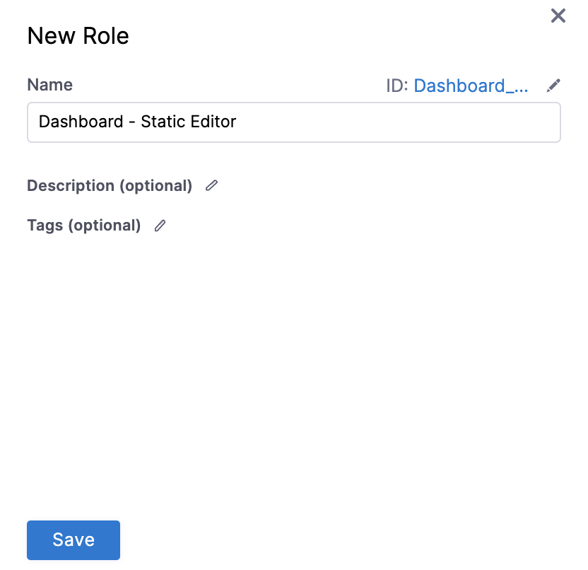 4. In Name, enter Dashboard - Static Editor and click Save.