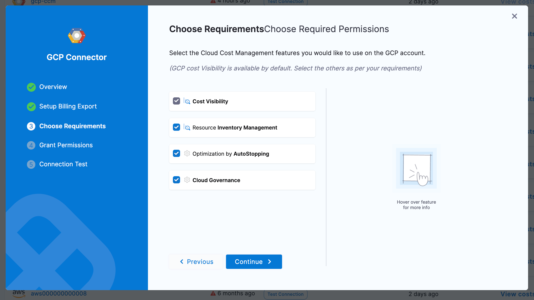 When assigning permissions to Harness' service account to GCP for CCM, there are many different permissions sets based on the features you are trying to leverage in specific accounts. This guide is meant to cover all the different features of CCM and the permissions you need to assign to enable them.