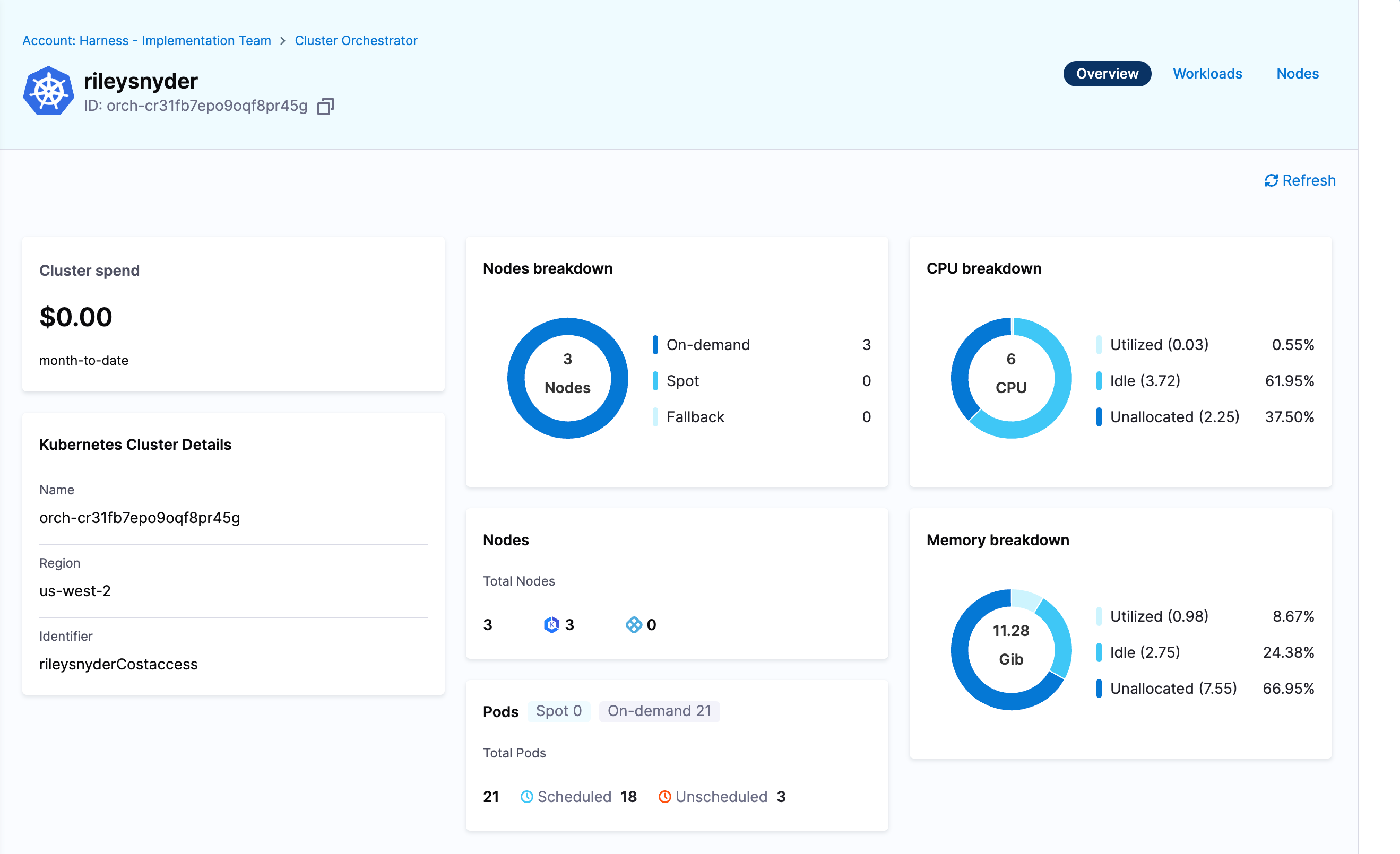 Now you can click on your cluster again in the menu and browse the cluster resources and current compute setup.