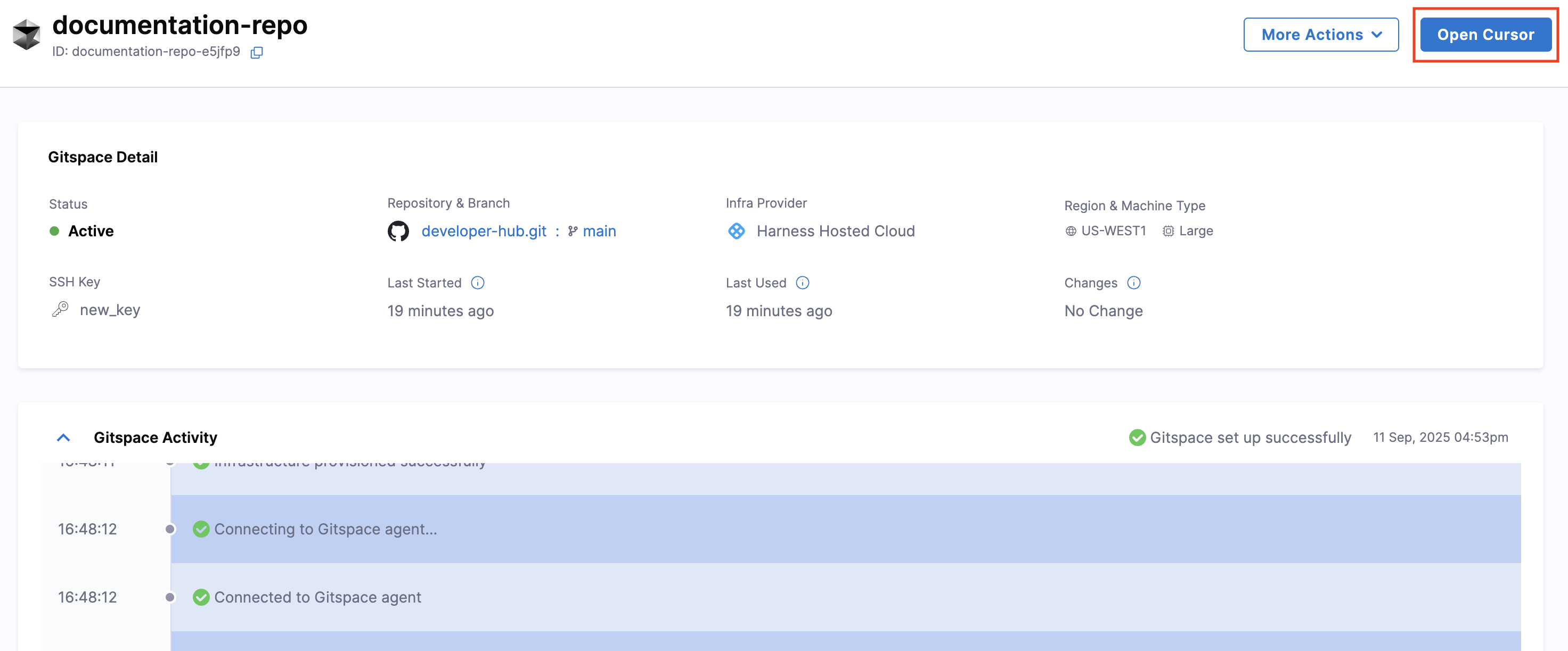 app.harness.ioto open Cursor and establish a connection. Click on Open Cursor.