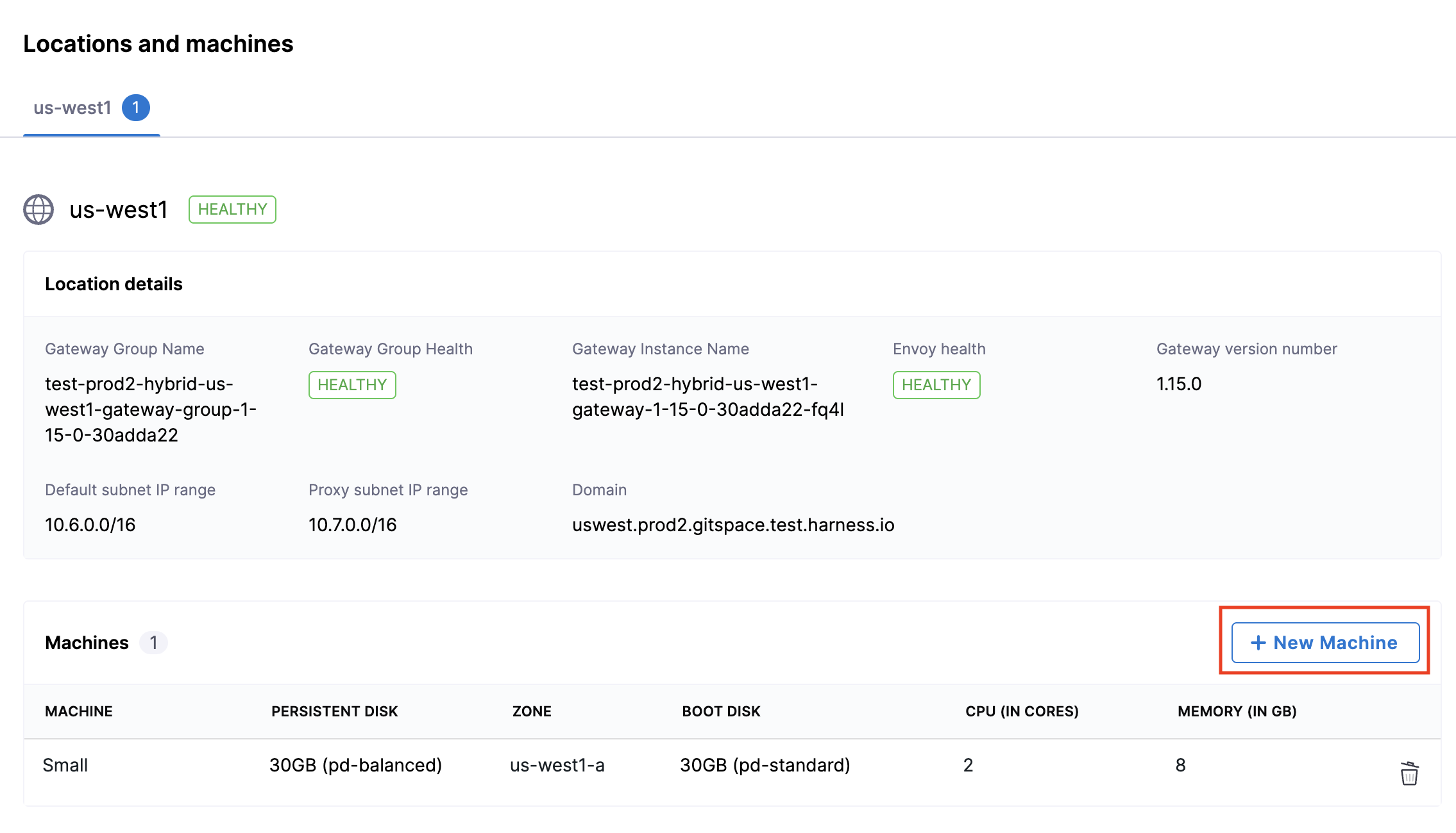 2. In the Locations and Machines section, click on New Machine.
