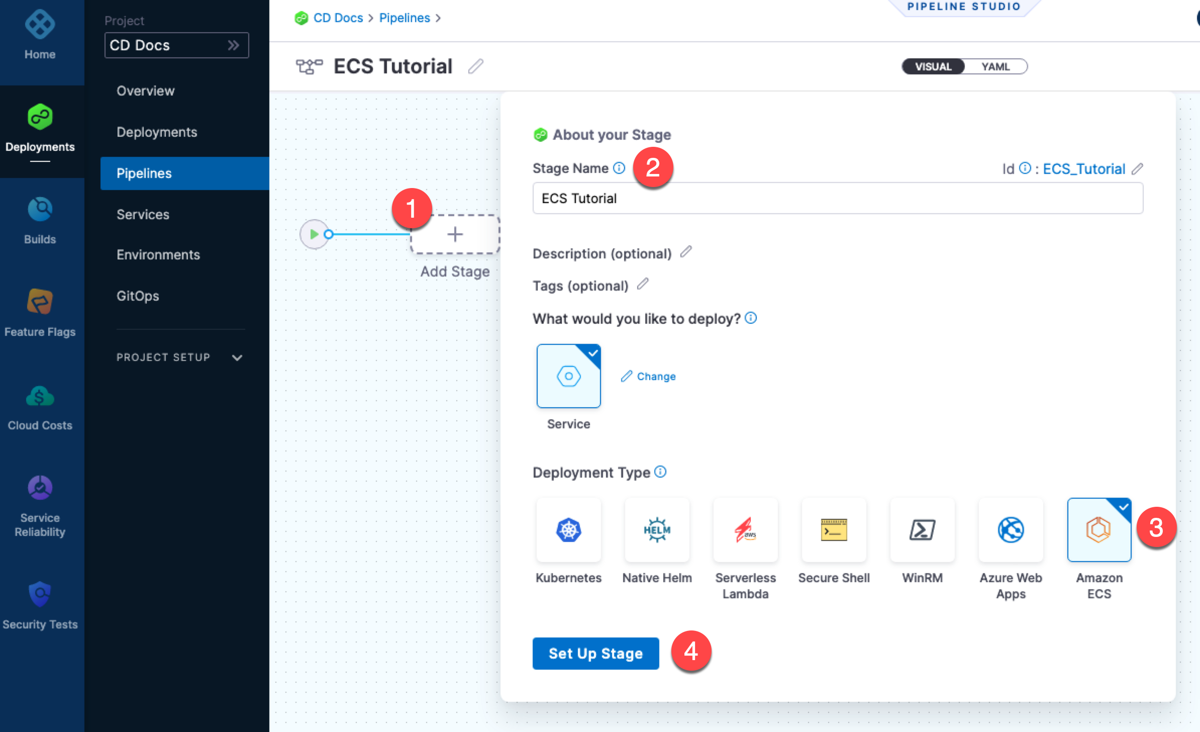 • Install and register a Harness Delegate for ECS deployments.