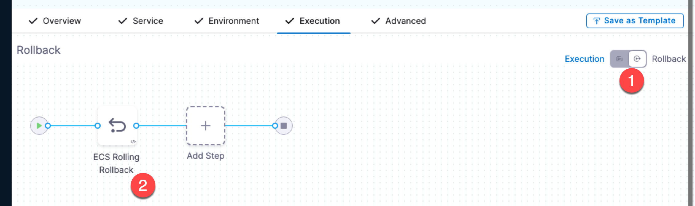 • If the validations for the Blue and Green ECS services fail, Harness aborts the deployment. You must fix the issue by resetting the service in the AWS Management Console.