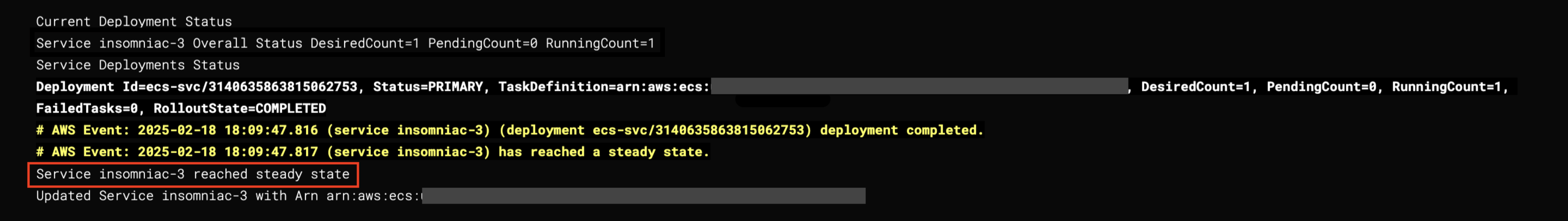 "taskDefinition": "arn:aws:ecs:us-east-1:1234567890:task-definition/tutorial-task-def:1",