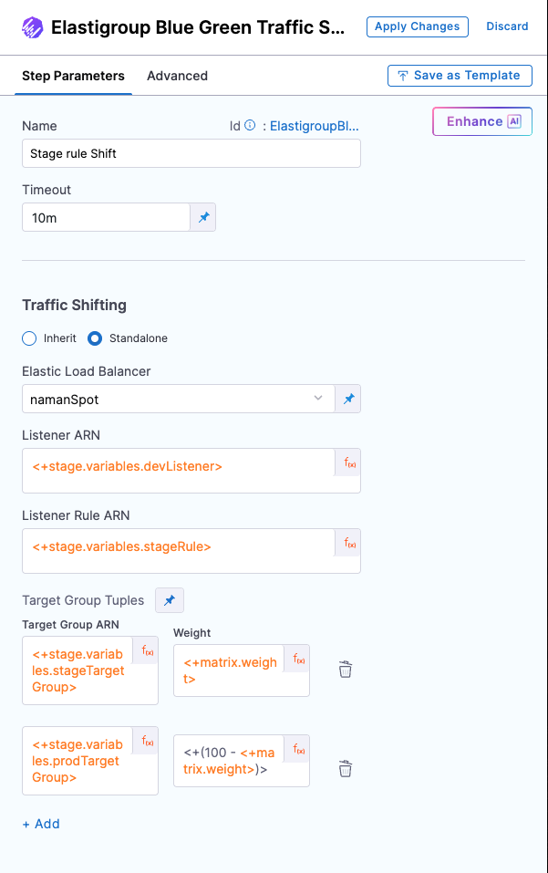Configure the Elastigroup Blue Green Traffic Shift step