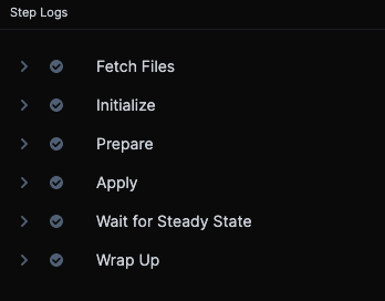 Let's look at the Prepare, Apply, and Wait for Steady State sections of the step's deployment log, with comments added:
