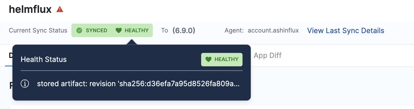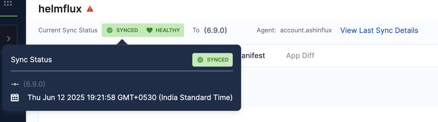 The Health And Sync status indicators now include extended metadata in a popover. Hovering over a status reveals additional context such as sync type, revision, and more. This allows you to quickly assess the application state without leaving the dashboard.