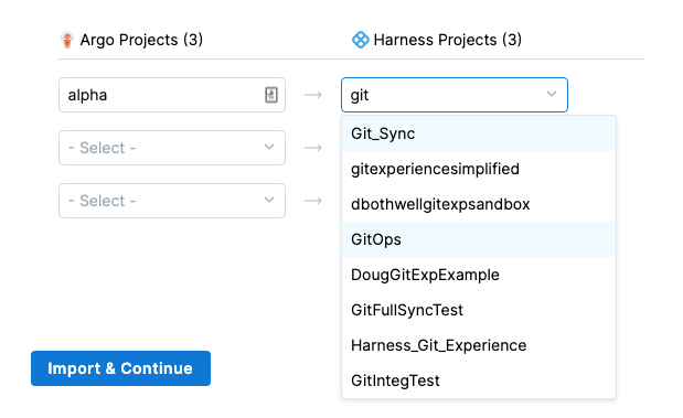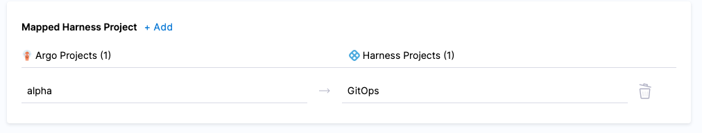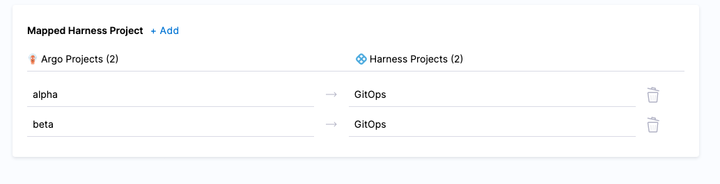 2. In each row, select the Argo project and the Harness project.