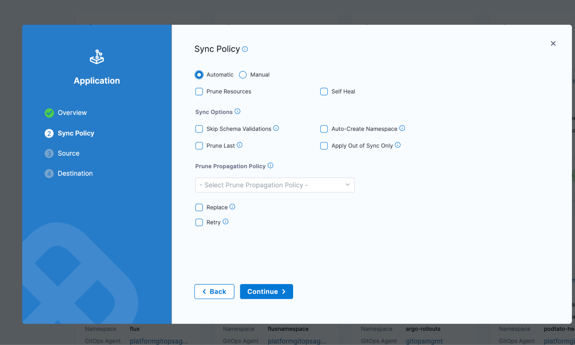 1. Once these are filled, Kustomize options will pop up. You can leave those as is and click Continue.