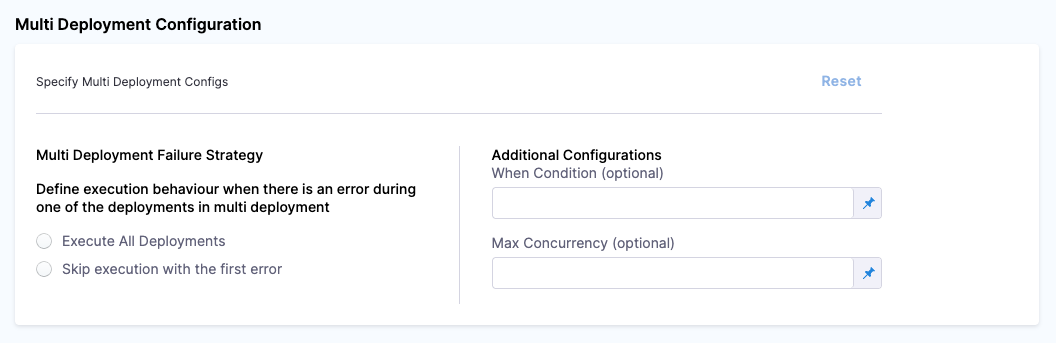 • If you select Deploy to Environments or Infrastructures in parallel, Max concurrency is equal to the number of environments or infrastructures.