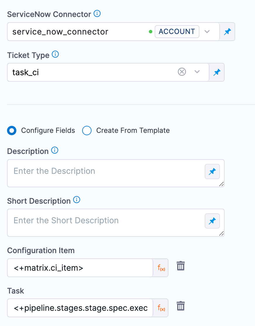 <+pipeline.stages.stage.spec.execution.steps.STEP_ID.ticket.fields.sys_id>. For example,<+pipeline.stages.stage.spec.execution.steps.create.ticket.fields.sys_id>.