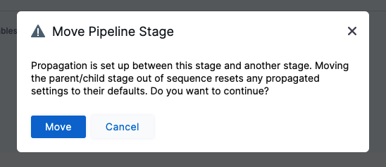 • When propagation is set up between a parent stage and child stage, moving the parent or child stage out of sequence resets any propagated settings to their defaults.