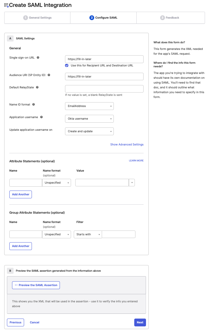 Add SAML Settings