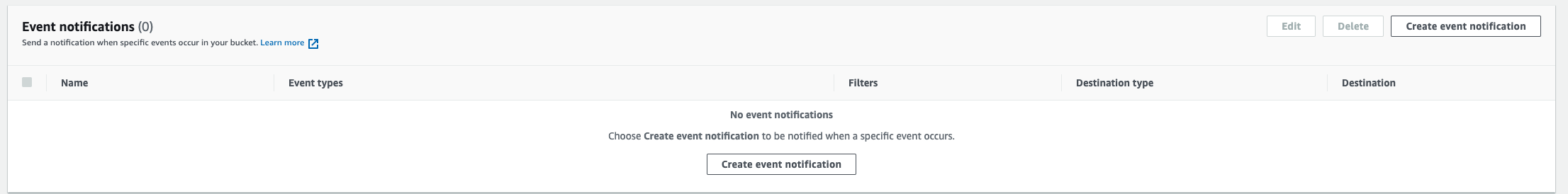 2. Under Event notifications, click Create event notification.