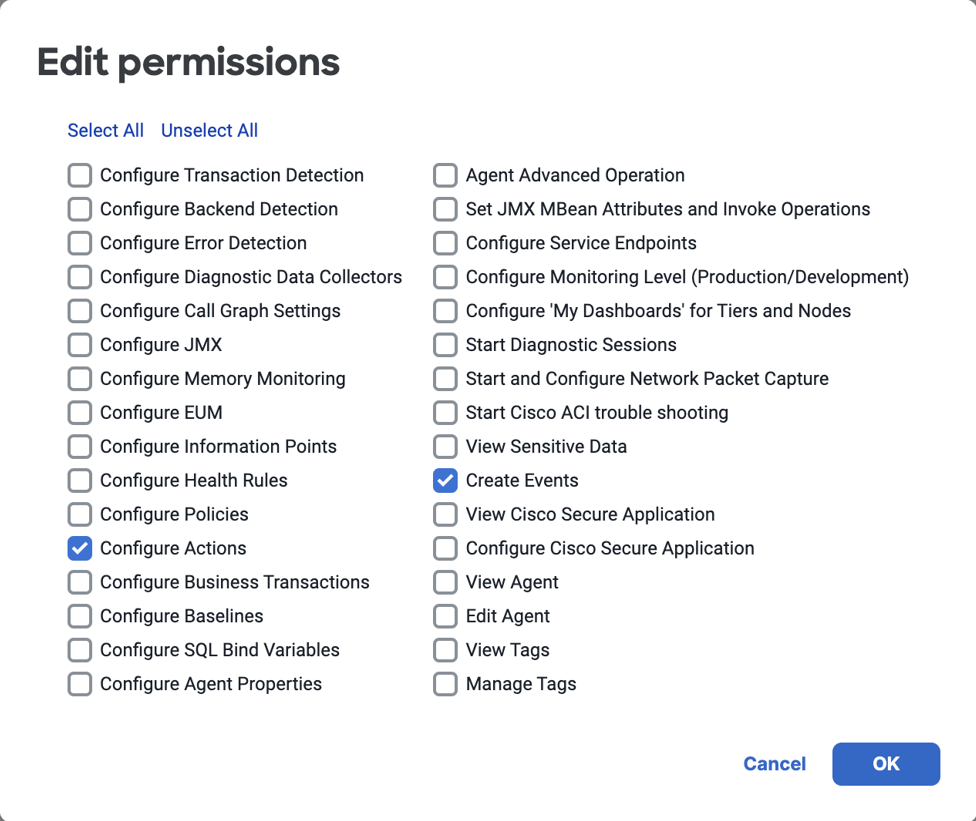 Once you've clicked the Edit checkbox, select the permissions for this role in the Edit permissions modal. The minimum permissions required are