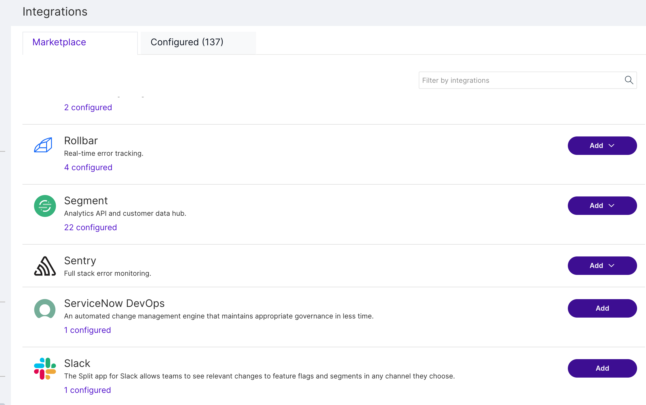 Click Integrations and navigate to the Marketplace tab.