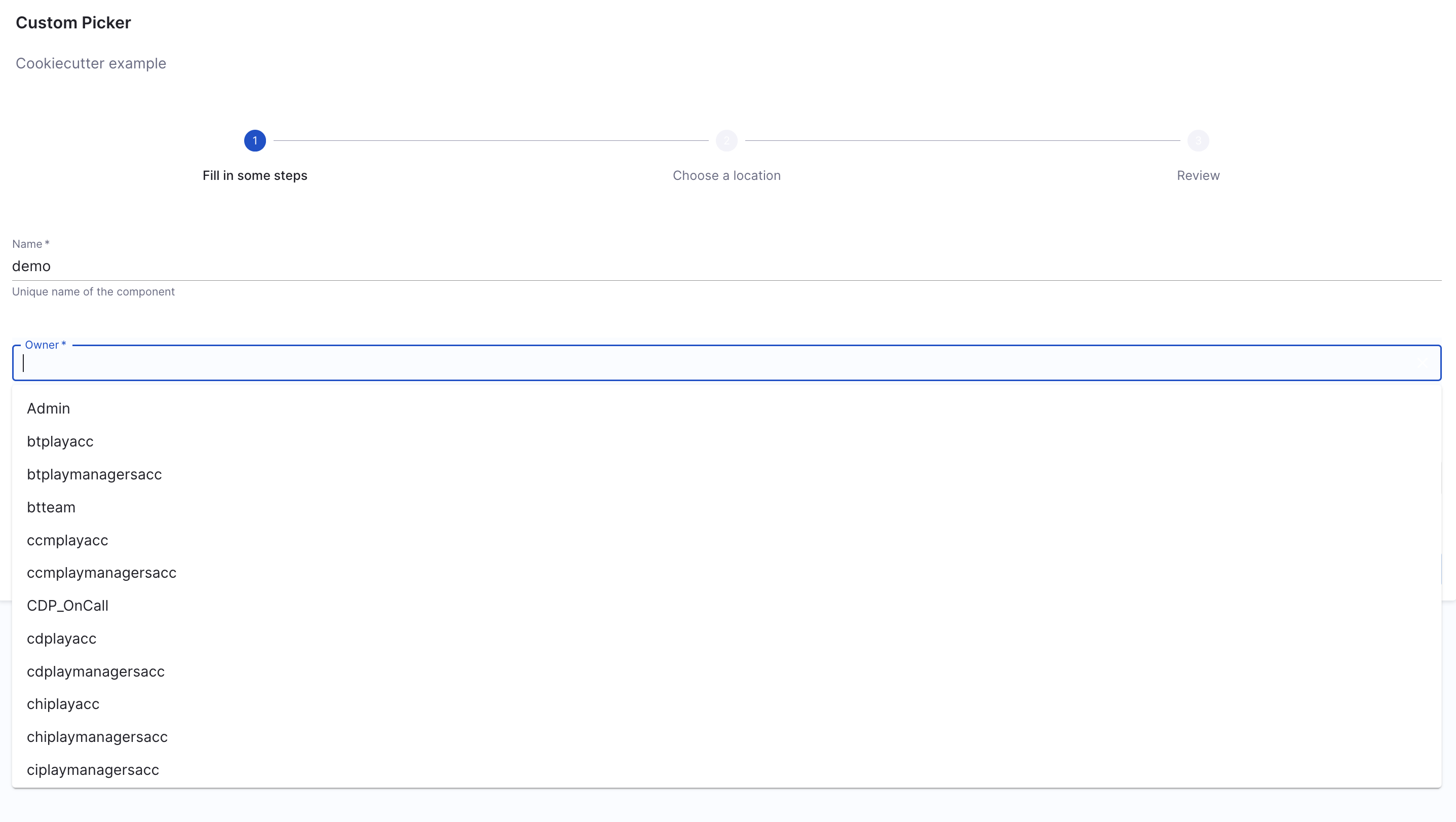 • Entity Picker – Select an entity from the catalog