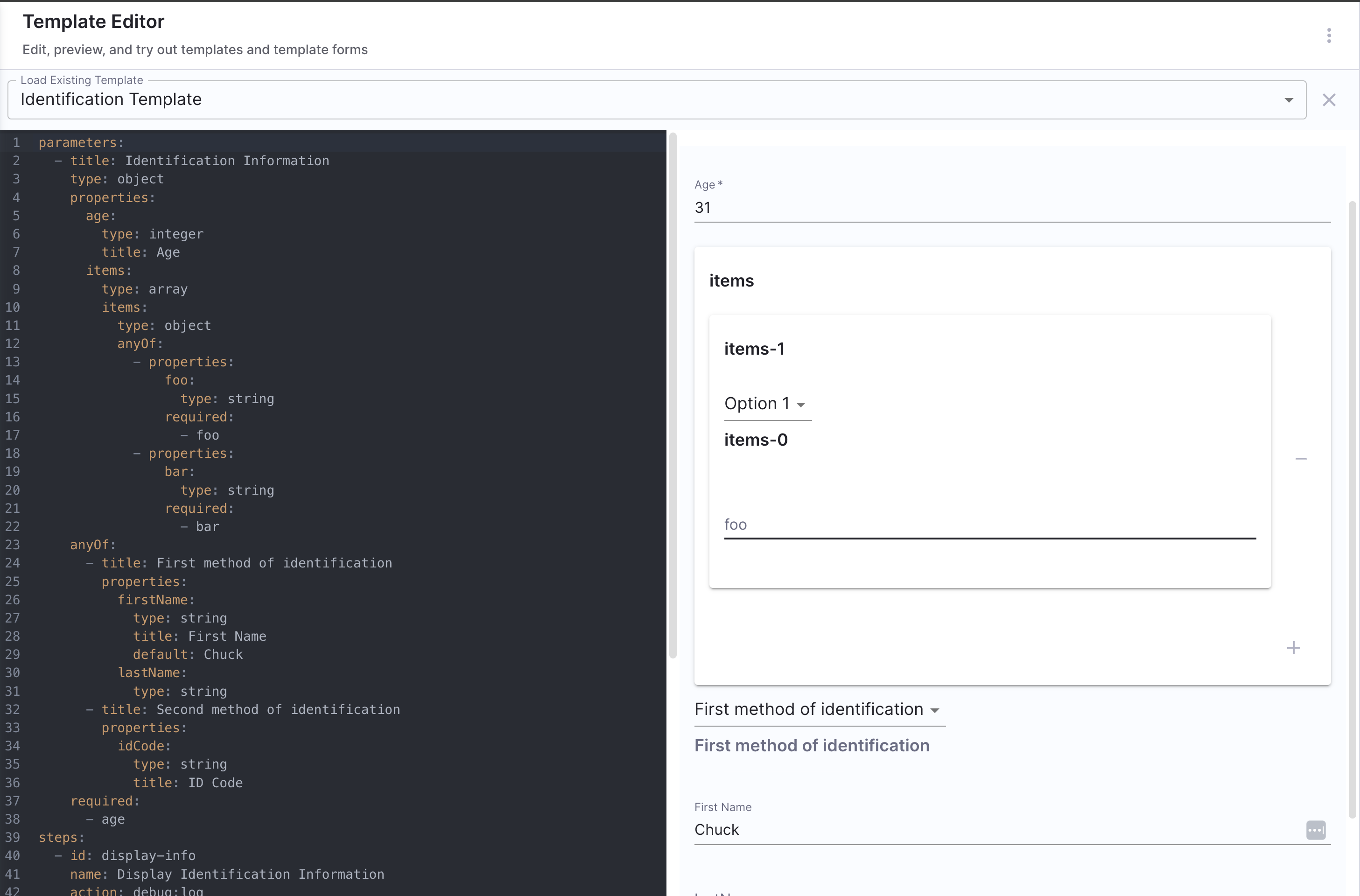 For scenarios not covered in this guide, it is recommended to use the react-jsonschema-form playground to design the UI for input fields. Additionally, Nunjucks serves as the templating engine for Self-Service Workflows.