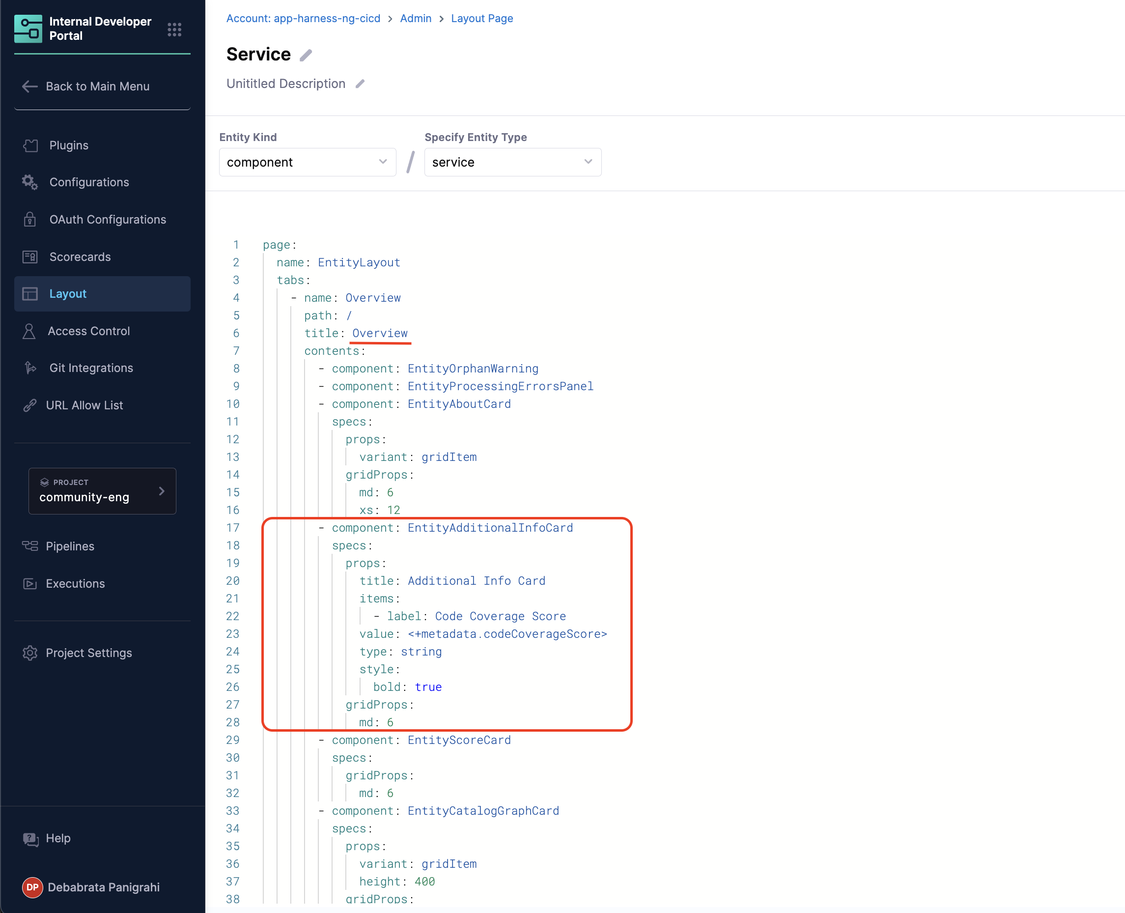 1. Now Select Edit Layout for component Service and add the following under Overview card.