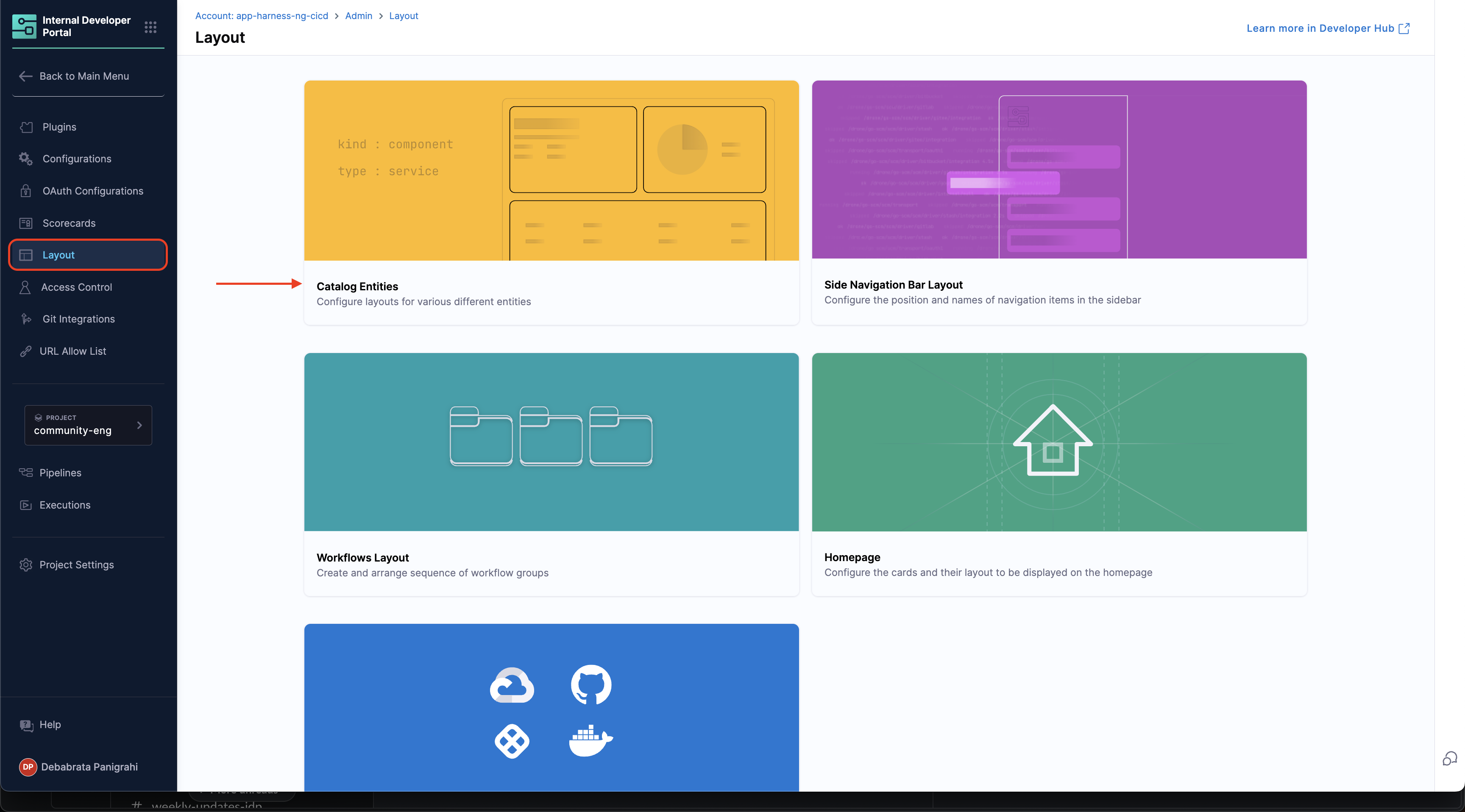 2. Select the entity whose layout you want to edit, or create a new catalog layout.
