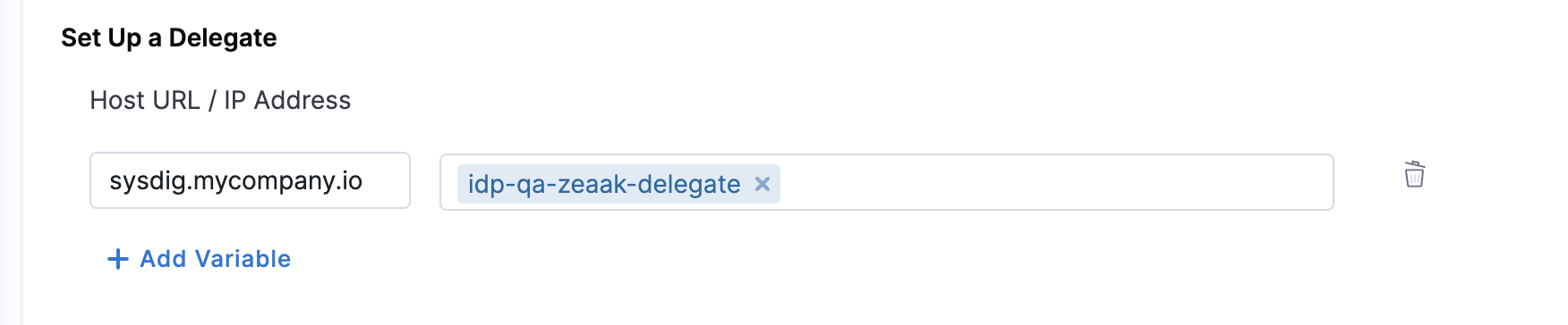 • If your Sysdig instance is behind a firewall, e.g.,sysdig.mycompany.com will not be accessible directly from Harness SaaS clusters, a delegate proxy has to be setup. Please ensure you have Harness Delegate installed for the same.