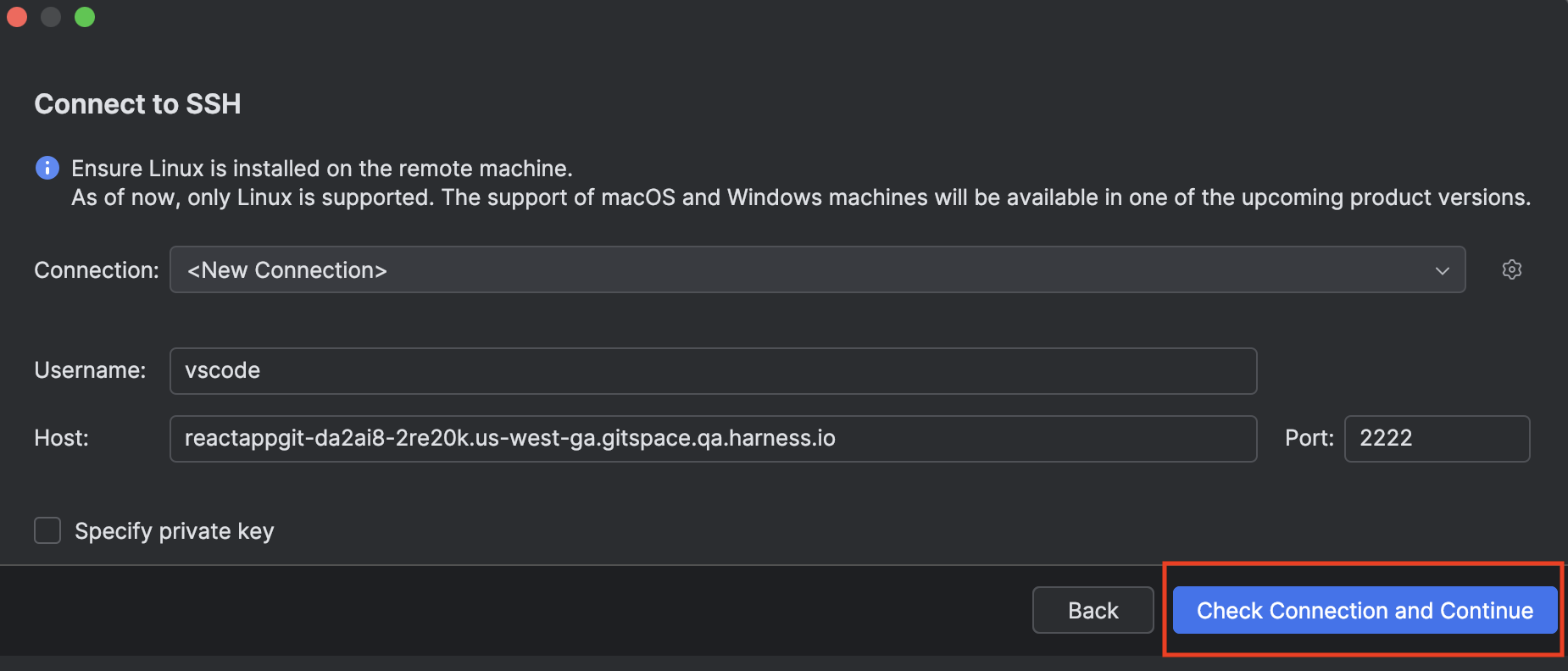 With CLion IDE support, Harness CDE enables seamless and efficient remote development in your Gitspaces with your IDE. This integration leverages JetBrains Gateway to establish a direct remote connection with CLion, eliminating the need for any prior setup.