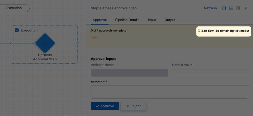 After an approval is granted, <+approval> variables store the approver name and email as well as any approval comments. These variables are useful if you want the pipeline to generate notifications about the approval.