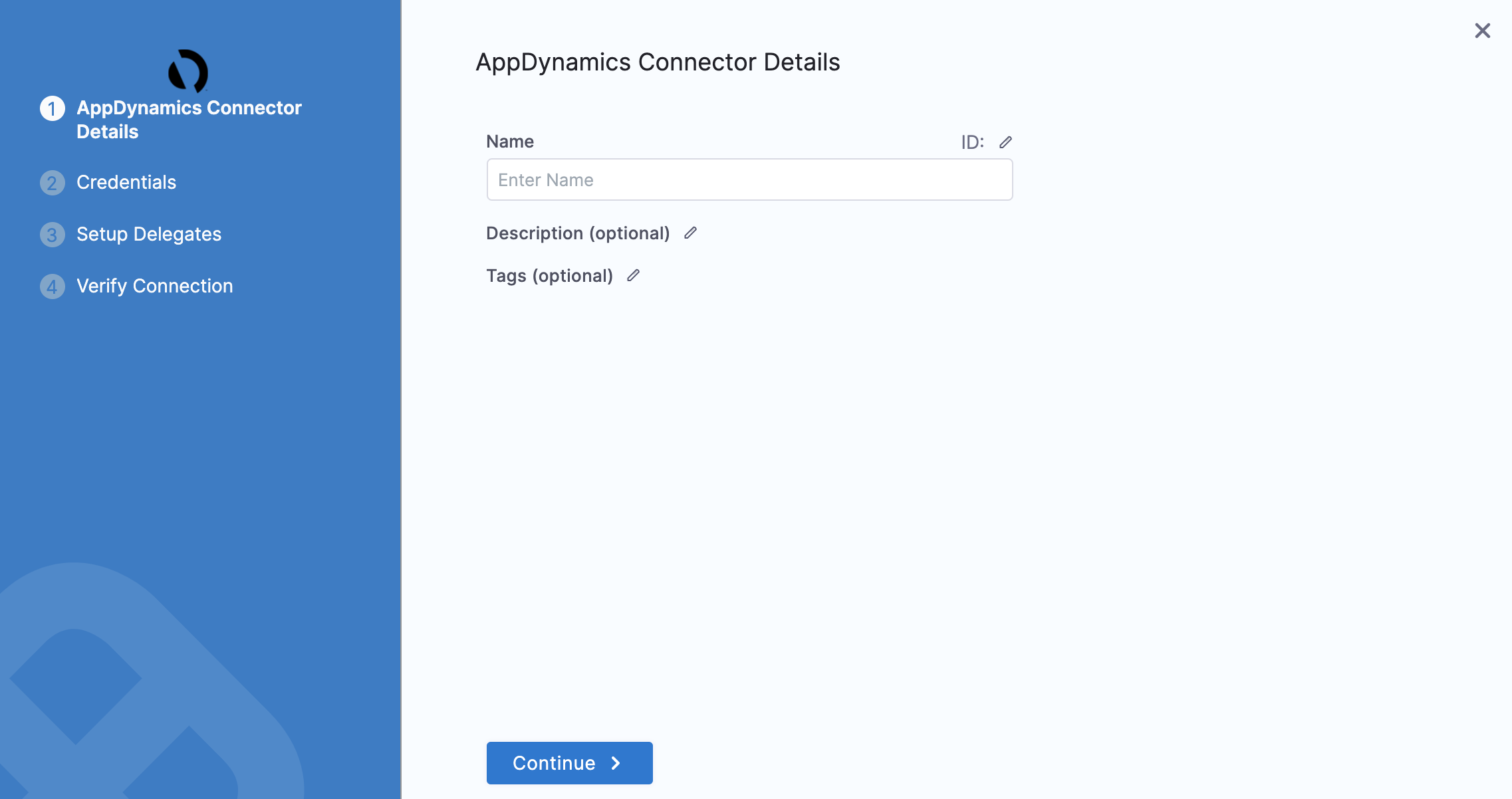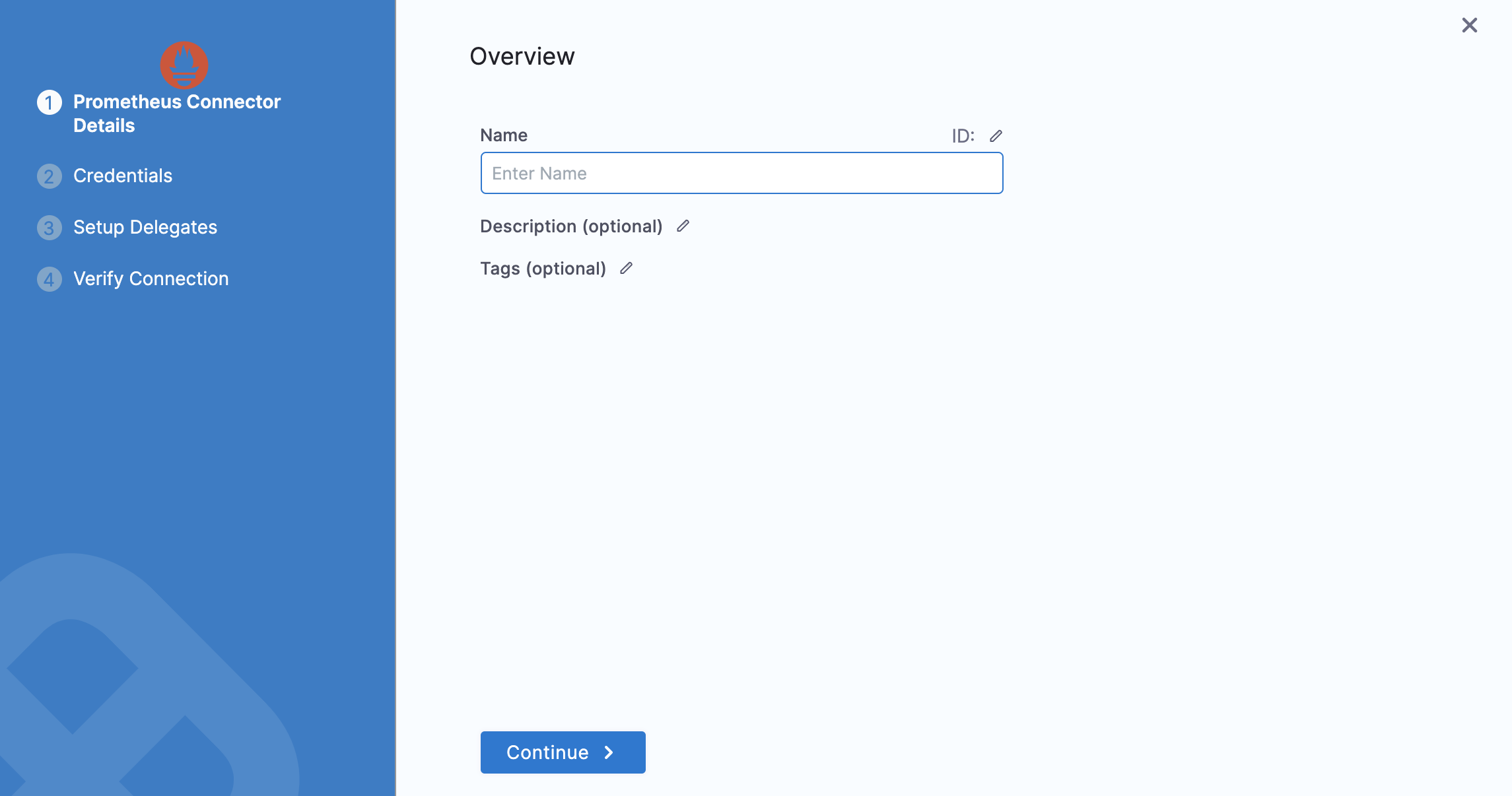 In the Overview tab, enter a name for the connector, an optional description, and a tag, and then select Continue. If you are going to use multiple providers of the same type, ensure you give each provider a different name.