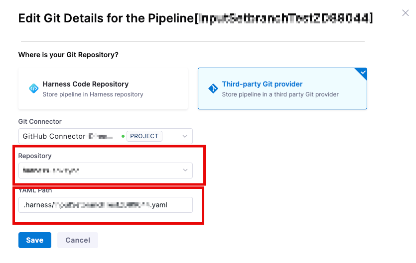 3. Update the information for the new repo, and possibly the new file location. Both have to point to the new existing location of the yaml file.