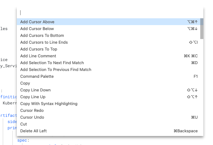You can use the following shortcuts when working in the YAML editor.