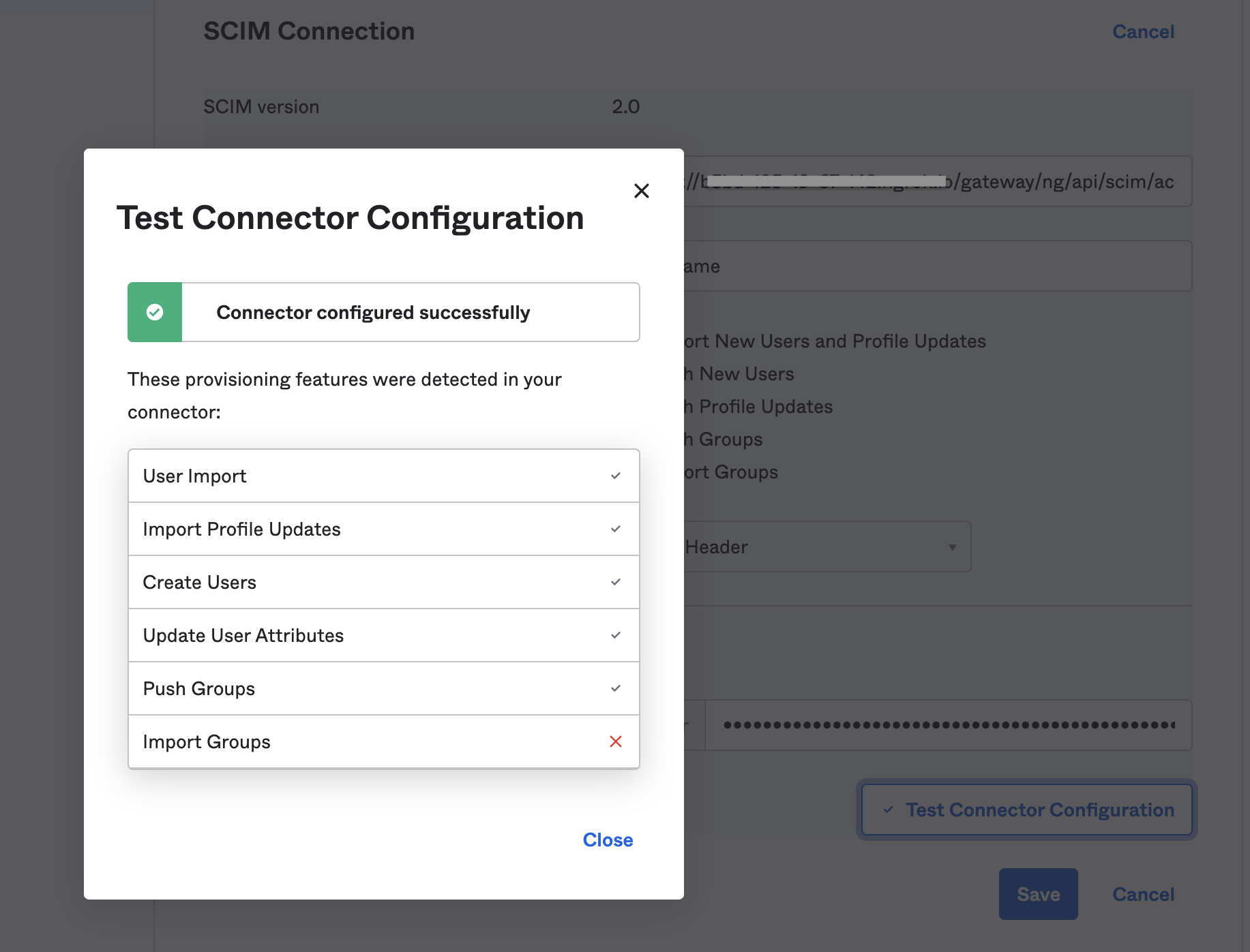 4. For SCIM connector base URL, enter the base URL for your API endpoint.