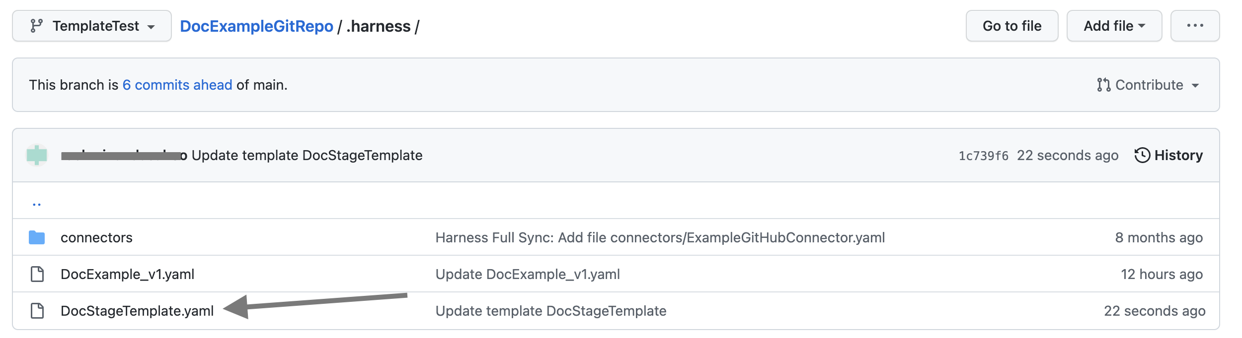 - The pipeline exists in Harness and the stage template exists in a Git repo.