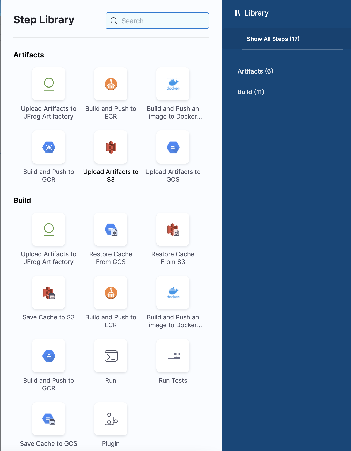 Go to your pipeline, and then select Add Step. The Step Library panel opens.