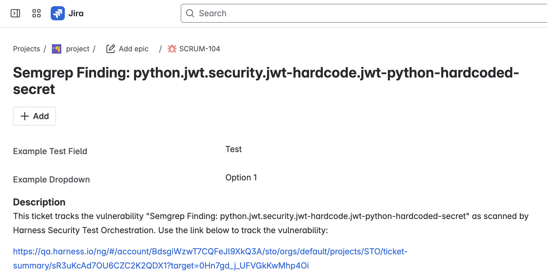 This integration has a separate setup path that is unrelated to other Jira-related integrations in Harness pipelines. To open Jira tickets for security findings in STO, you must set up the integration as documented below. You cannot use other Jira workflows to create Jira tickets in STO. For example, you cannot integrate Jira with STO using Custom steps with Jira Create or other related steps.