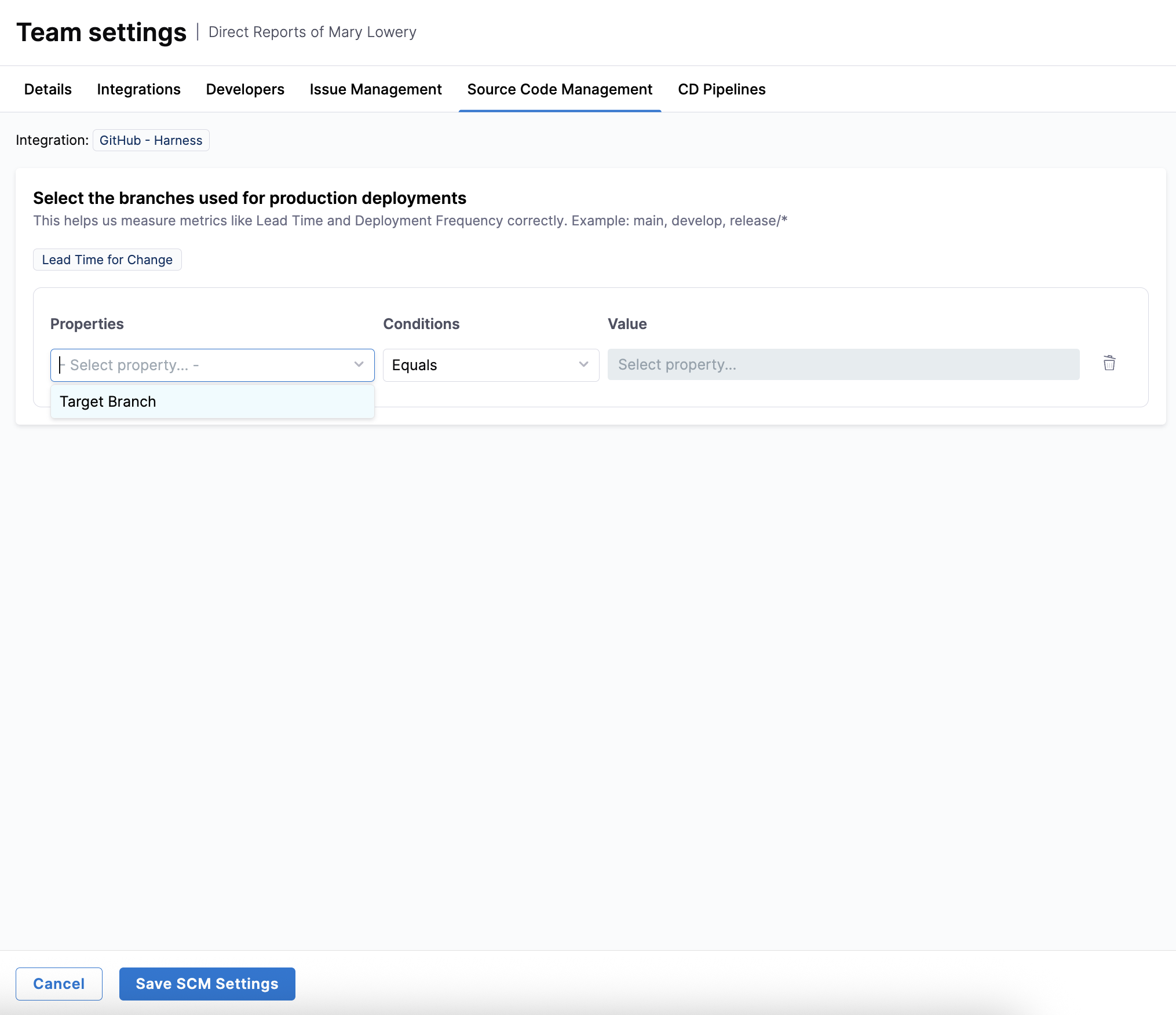 Once you've set the target branch, click Save SCM Settings.