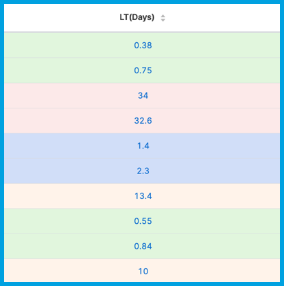 You can apply color coding to change how cells look in Table reports. Color coding is useful for quickly identifying low/medium/high values.