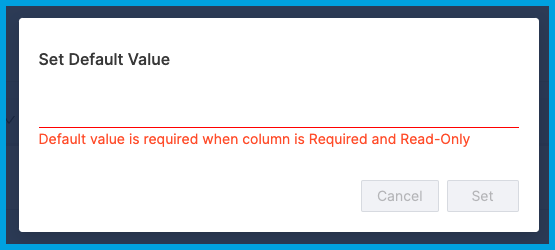 If a column is both Required or Read-Only, you must specify a default value. If you have not already set a default value, you're prompted to provide one upon selecting both Required and Read-Only.