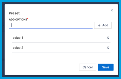 If you selected Preset, add preset values.
