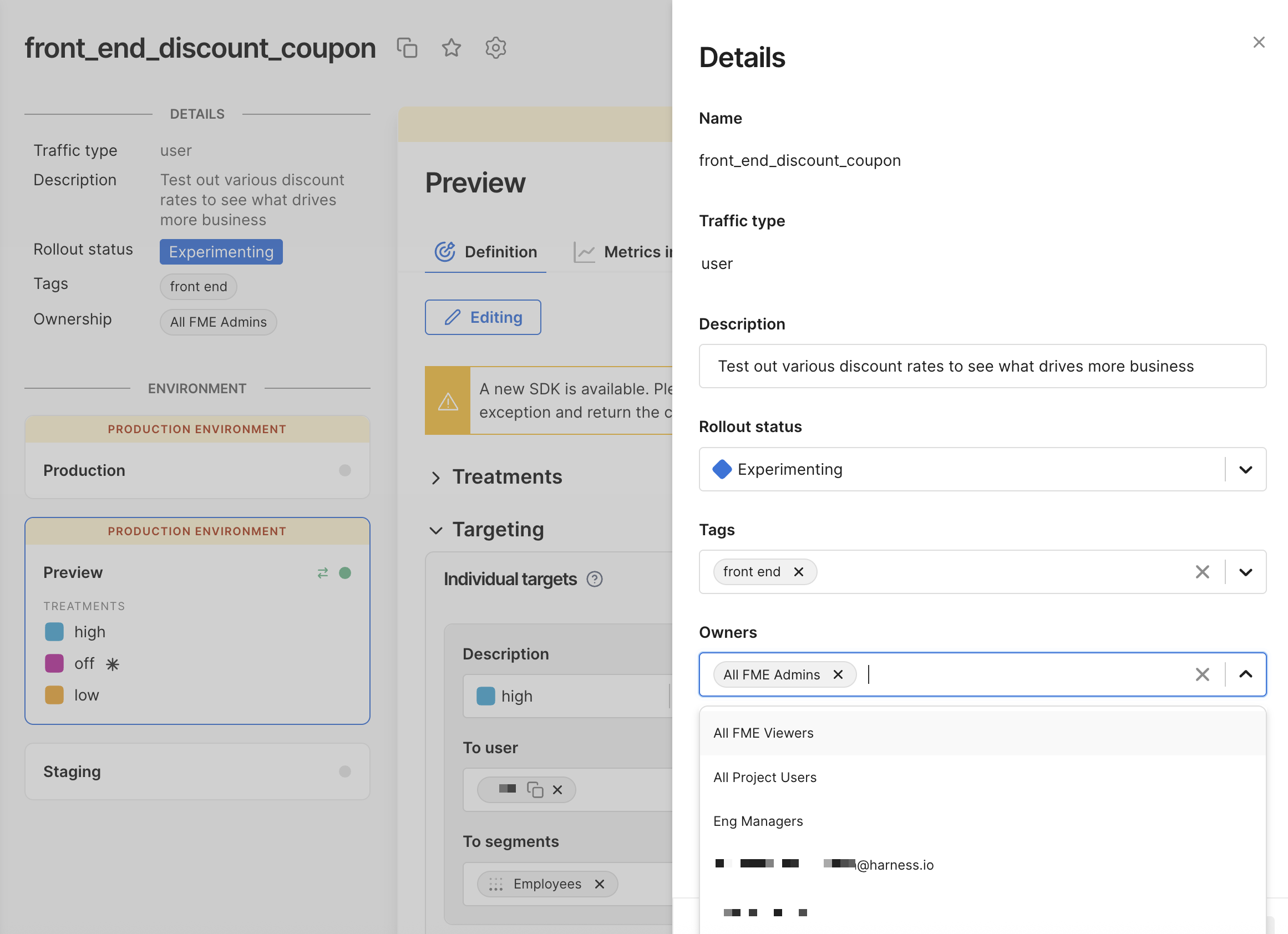 Harness FME has updated the owners role to improve clarity and enhance security in feature flag, segment, and metric permissions. Owners now represent responsible stakeholders, rather than users with inherent editing rights.